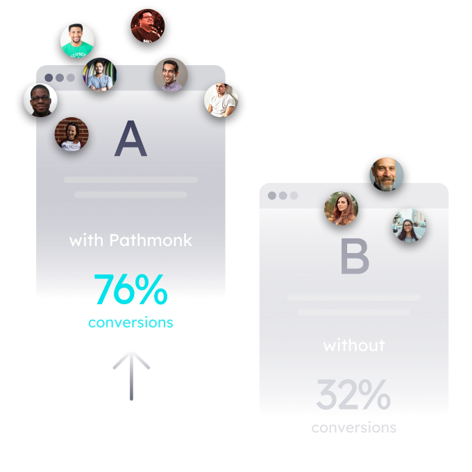 By giving visitors the right nudge at the right moment, Pathmonk helps turn more of them into leads, without you having to manually adjust anything. Our software figures out what each person wants and shows them exactly what will make them engage, which means more people filling out forms, scheduling demos, or signing up for your services.